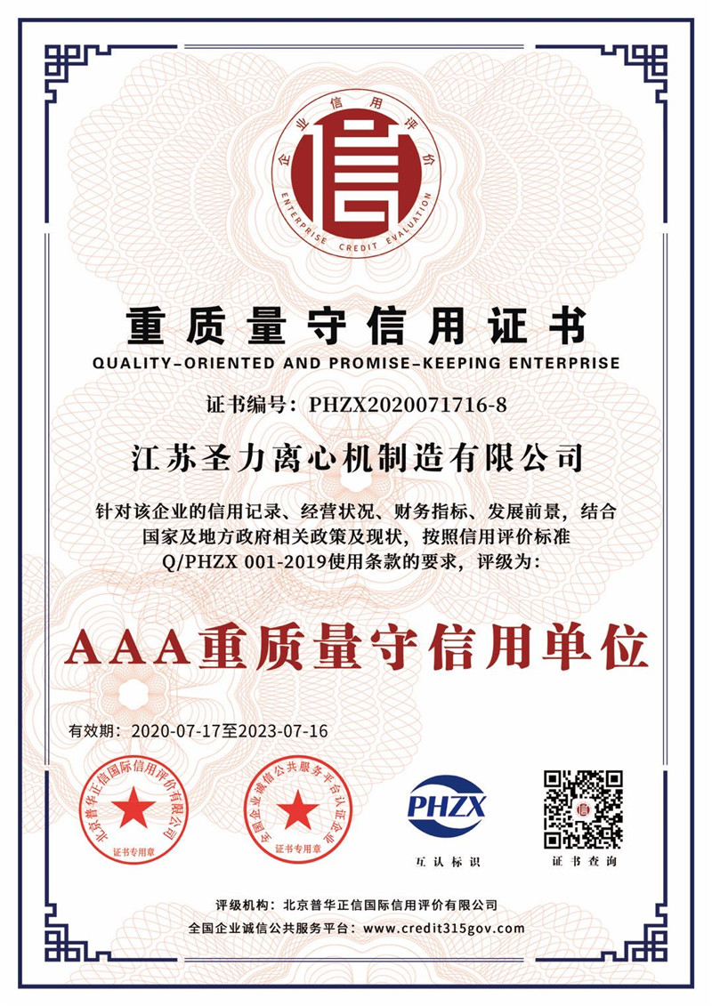 江蘇圣力離心機(jī)制造有限公司是國內(nèi)分離機(jī)械行業(yè)中主要的離心機(jī)生產(chǎn)企業(yè),對離心機(jī)的研究、設(shè)計、制造有多年的歷史,擁有齊全的設(shè)備、完善的檢測手段。公司已通過IS09000國際質(zhì)量體系認(rèn)證、ISO14001環(huán)境管理體系認(rèn)證、ISO45001:2018職業(yè)健康安全管理體系認(rèn)證和CE認(rèn)證,是江蘇省高新技術(shù)企業(yè),曾榮獲國家和地方多項榮譽(yù)稱號。